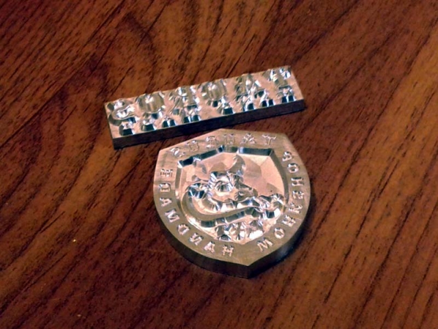 Клише для тиснения, латунные и медные штампы Заказать клише и штампы Изготавливаем клише для тиснения из латуни, магния, меди, стали по вашим чертежам. Возможно, вас также заинтересует: Ветеринарные клейма Замки свадебные Калибровочные, поверительные и метрологические клейма и плашки Клейма ударные Матрицы для сувенирных медалей, для пресса Матрицы для чеканки сувенирных монет Пломбиры, пломбираторы Приборные панели Разное Раскрой и фрезеровка материалов Сургучные печати Термоштампы Шильды, таблички, жетоны Штампы стальные, пуансоны, литеры